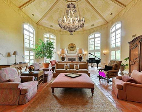 This beautiful Chandelier is trimmed with Empress Crystal(TM) Maria Theresa 100% Crystal Chandelier. A great European Tradition. Nothing is quite as elegant as the fine crystal chandeliers that gave sparkle to brilliant evenings at palaces and manor houses across Europe. This two-tier version from the Maria Theresa collection is decorated with various 100% crystal that capture and reflect the light of the candle bulbs, each resting in a scalloped bobache. The timeless elegance of these chandeliers is sure to lend a special atmosphere in every home. Please note this item requires assembly. This item comes with 18 inches of chain. SIZE: HT 52 X WD 46 LIGHTS: 24 LIGHTS