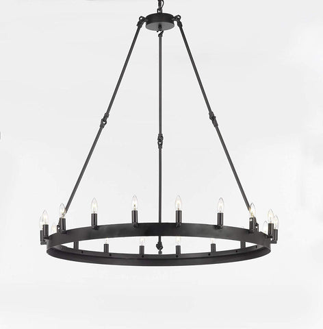 Wrought Iron Vintage Barn Metal Castile One Tier Chandelier Chandeliers Industrial Loft Rustic Lighting W 38" H 40" Size: W 38" H 40" 18 Lights