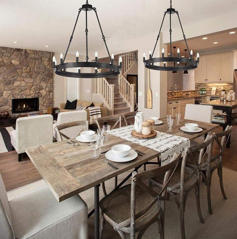 Set of 2 - Wrought Iron Vintage Barn Metal Castile One Tier Chandelier Chandeliers Industrial Loft Rustic Lighting W 26" H 27"